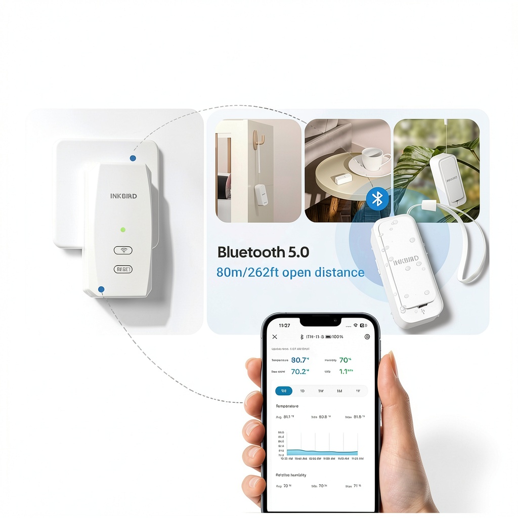 - 300-day local storage and 1-year cloud data with free export for analyzing trends and VPD on the INKBIRD app